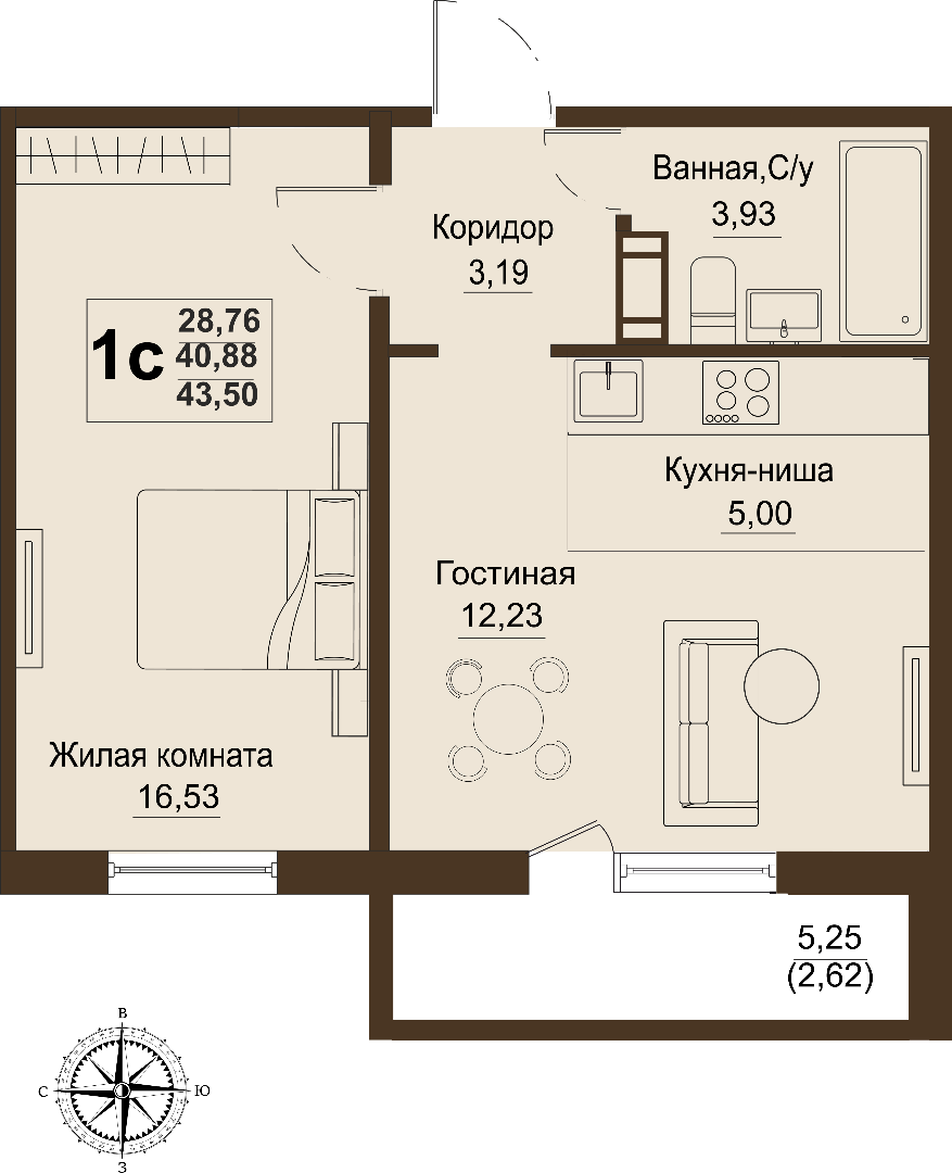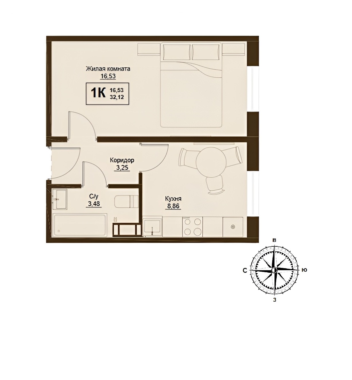 При покупке квартиры студия + 2 или классическая 2-х комнатная квартира, кладовка всего за 21 т.р.
