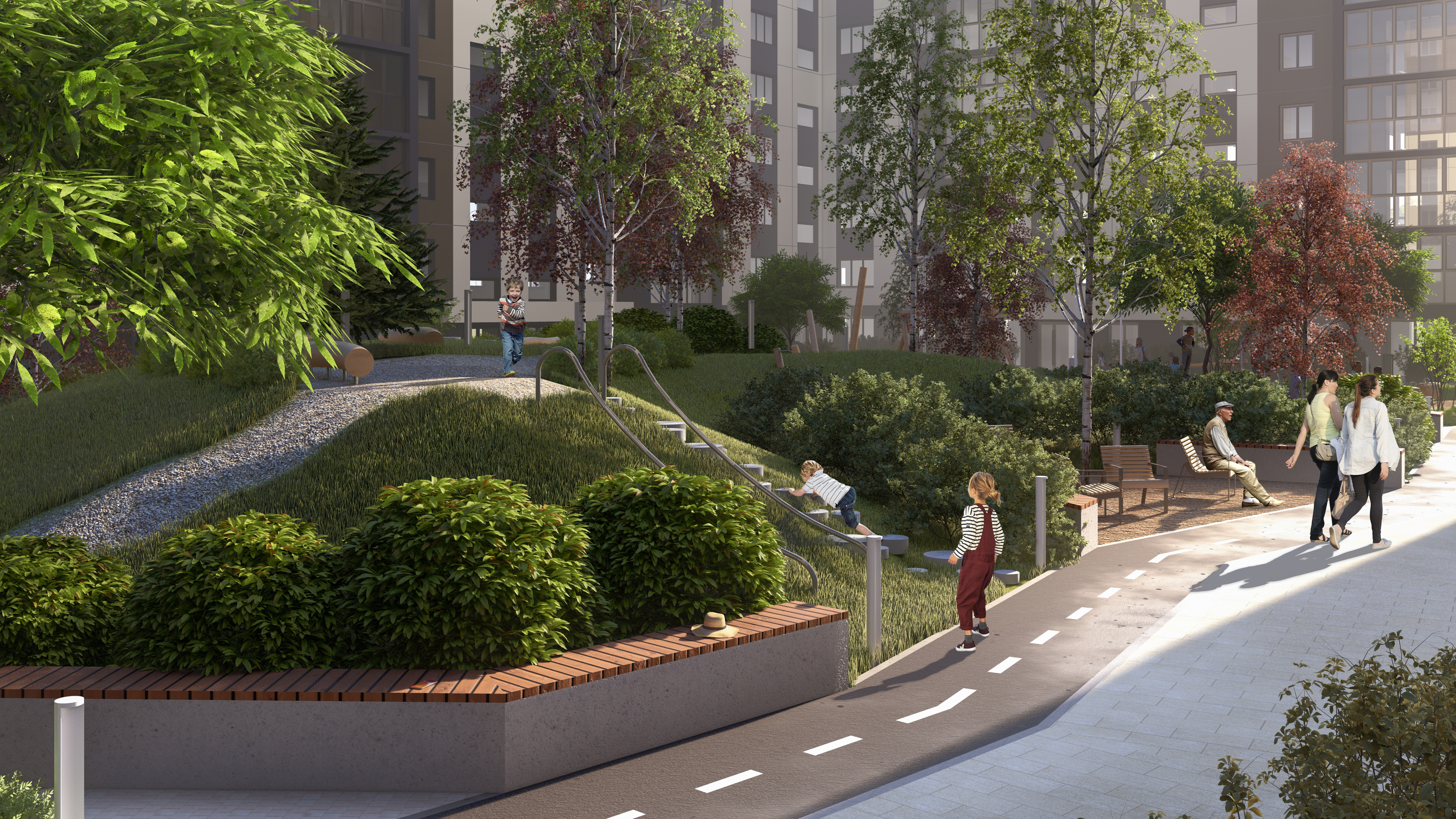 Для более взрослых детей двор также станет пространством для коммуникации, активности и веселья.