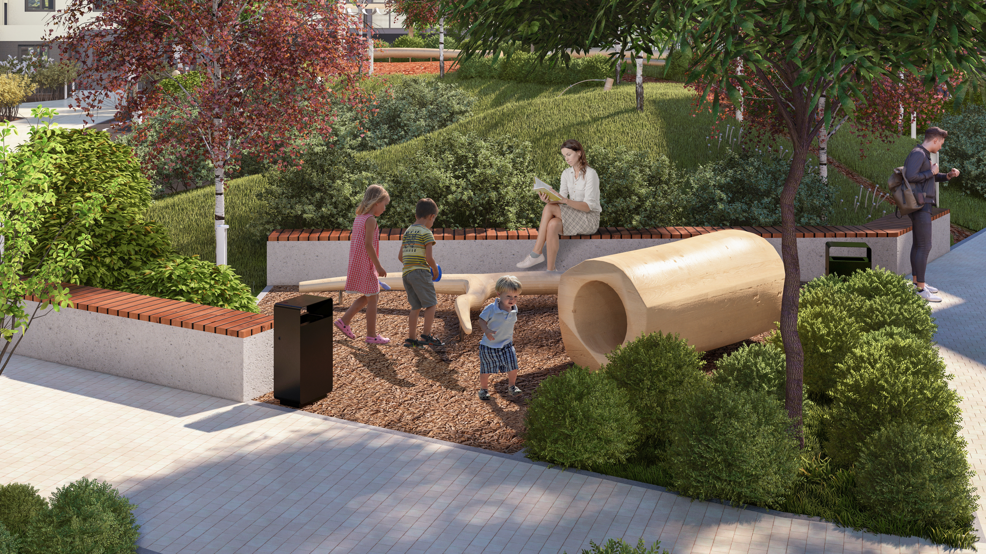 В оформлении детских игровых пространств использованы природные материалы, которые помогают интерактивному общению детей с природой.